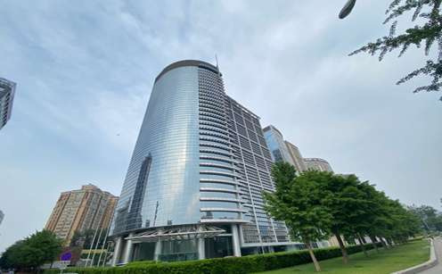 地处于东三环北路与首都机场快速路的交汇轴心点,也是北京最新建设的悬磁浮列车――地铁10号线与机场快轨 的交叉中心,因此也成为频繁来往于城市间的高级商务部人士之首选办公地点。周边众多使馆区与五星级酒店的环抱更 为这座5A级高档商务写字楼增添了一抹绯红。项目共三十二层,楼高一百一十米,占地1.3公顷,总建筑面积66200平方 米,开间面积131-2375平方米。地面大堂楼高三层,瑰丽堂煌,充份显出其高尚格调及时代气息。